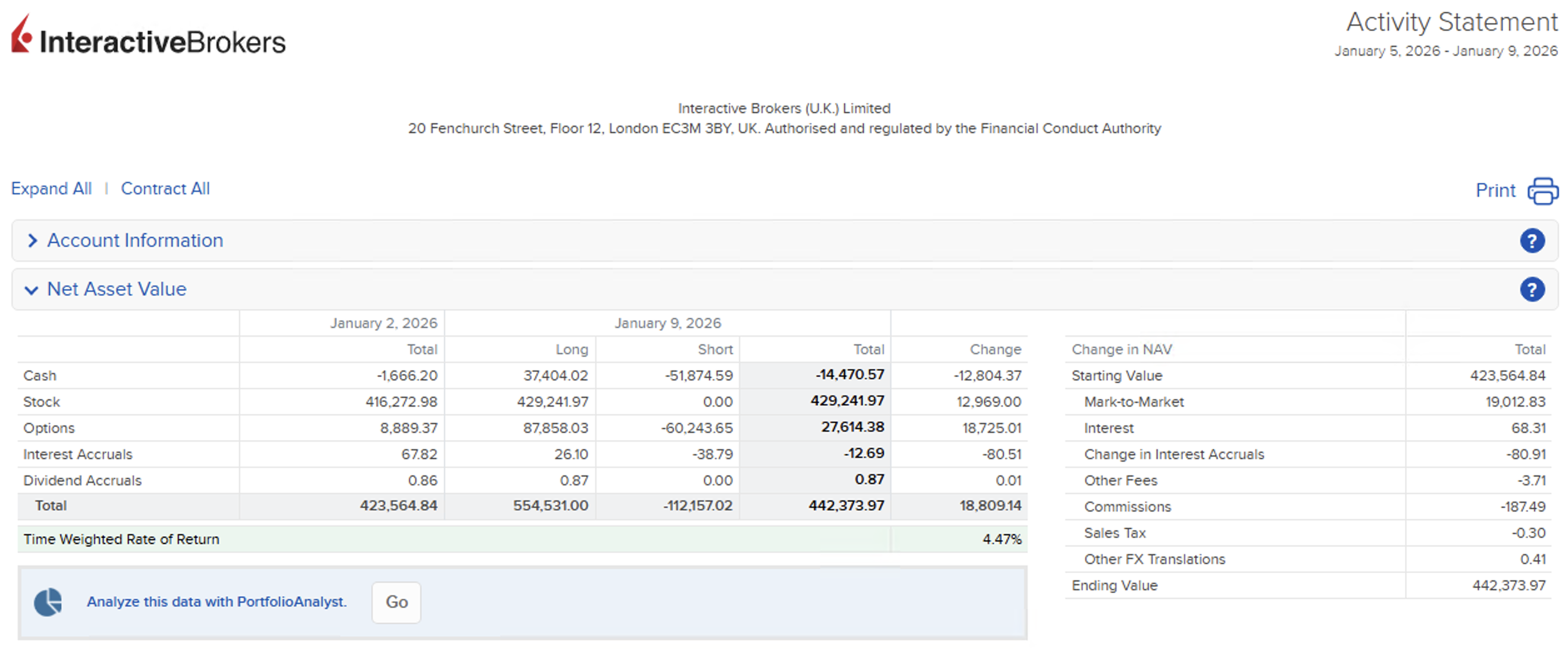 Das Depot gewinnt 18.809,14 EUR, umgerechnet 4.47%. Damit steigt der Wert auf 442.373,97 EUR. Die Cushion ist gut mit 79.14%. Offene Prämien sind bei ca. 15kUSD.
