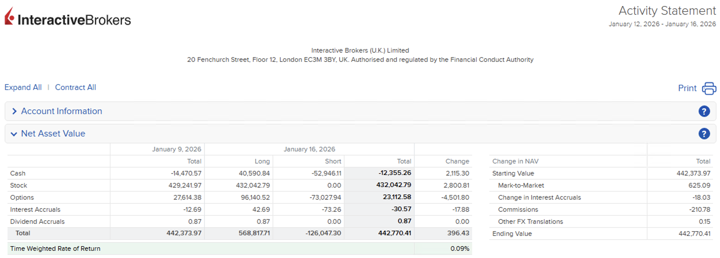 Das Depot gewinnt minimal mit 396,43 EUR, umgerechnet 0.09%. Neuer Depotwert ist 442.770,41 EUR. Die Cushion ist gut mit 80.59%. Offene Prämien sind bei ca. 12kUSD.