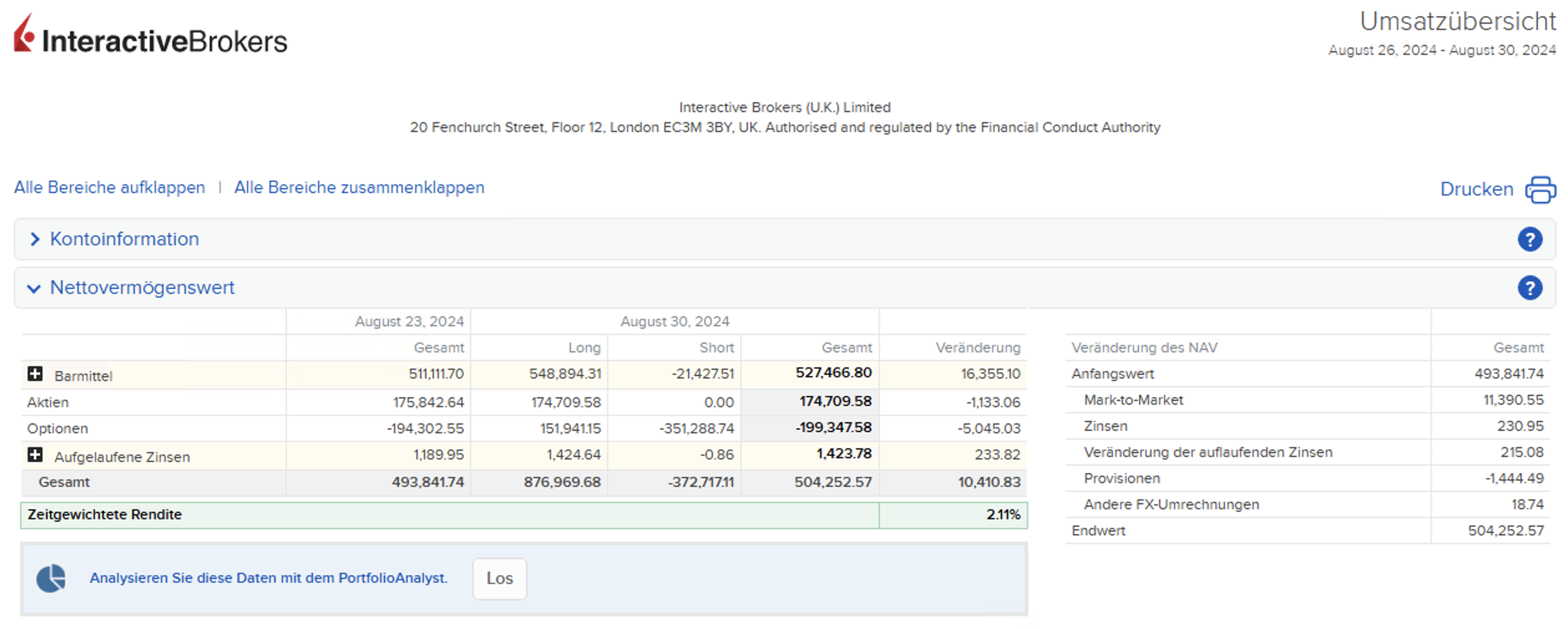 Unterm Strich ist es damit fast eine Nullrunde (in Relation zur Depotgrösse) mit -494,92 USD Verlust auf Wochensicht.