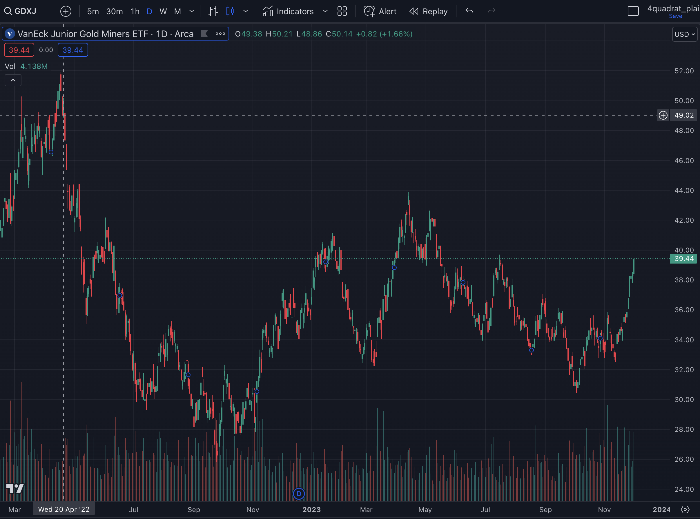 Exemplarisch hier der Trade auf GDXJ.
