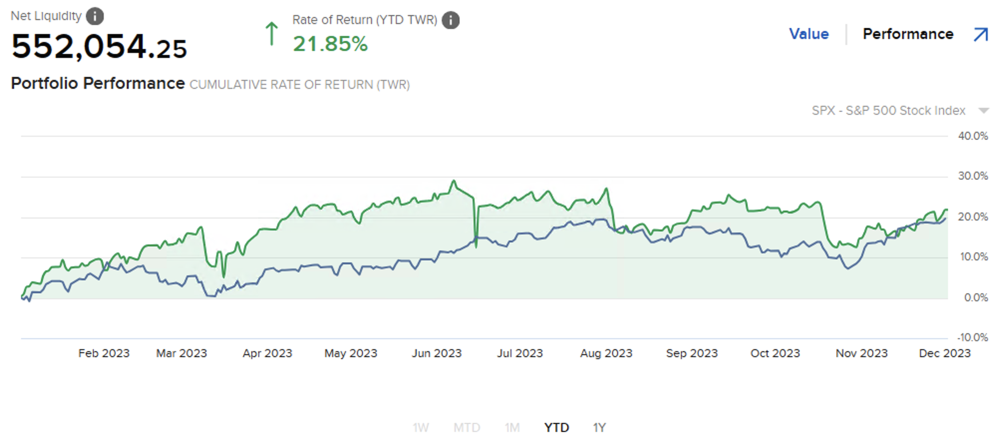Schön angestiegen ist auch wieder die Jahresperformance. Mit über 21% bin ich sehr zufrieden.
