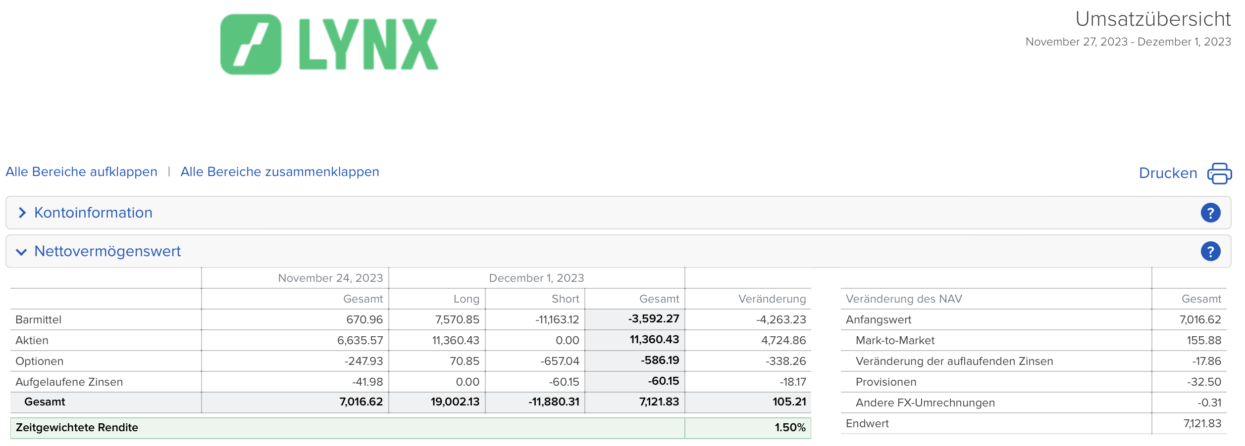 Keine (oder nur wenig) Veränderung in der Depotperformance. Bald ist das Jahr vorüber und ich möchte dann entscheiden, wie es mit dem kleinen Depot weiter geht.